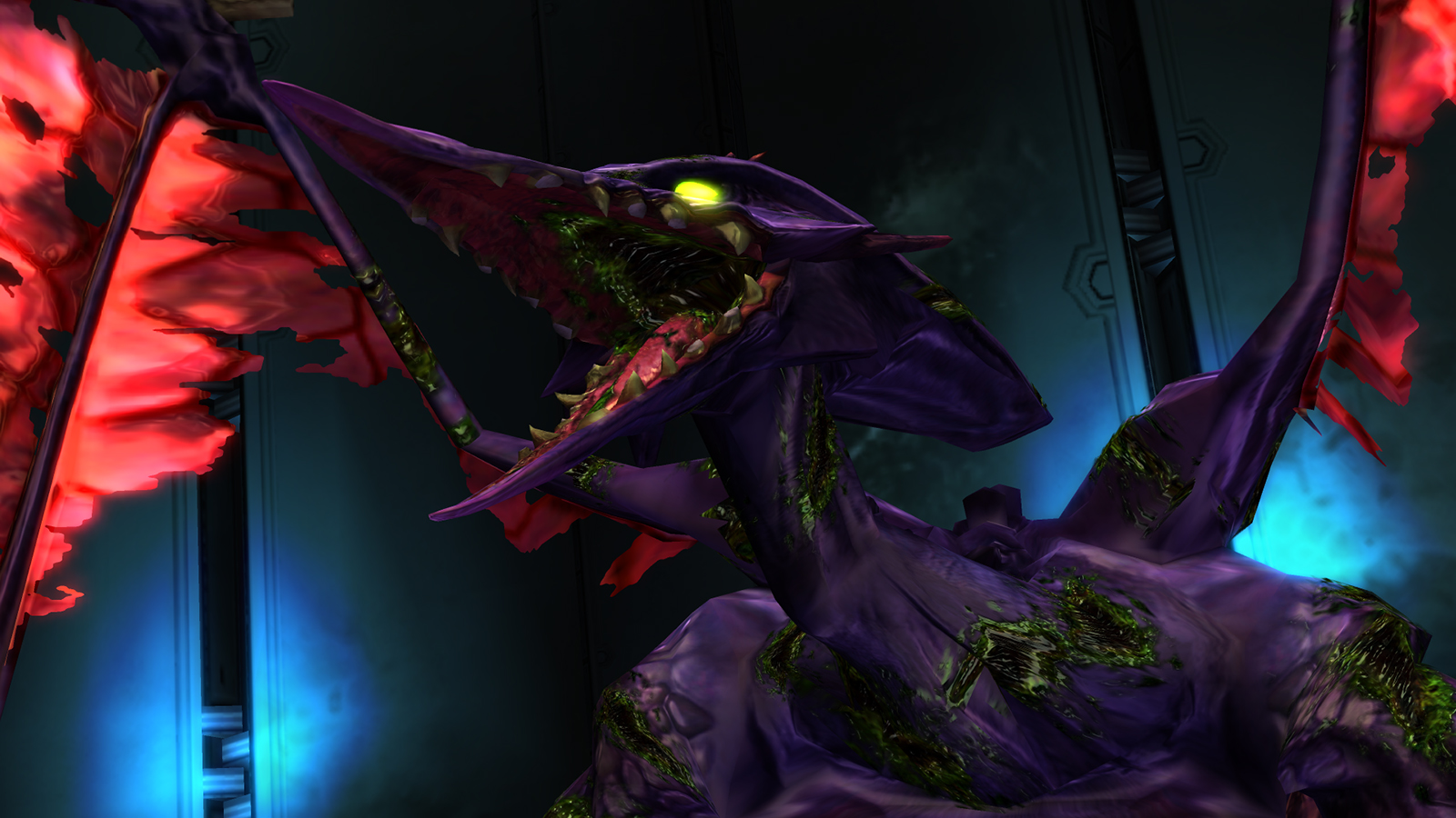 "The leader of the Space Pirates. He looks like a pterosaur but has high intelligence and a brutal nature. He plans to steal the baby Metroid from Samus for his own use. Ridley utilizes wings for a full range of flight and attacks with fireballs from his mouth and whips of his tail. As the culprit behind the murder of Samus's parents, the connections with Samus run deep."